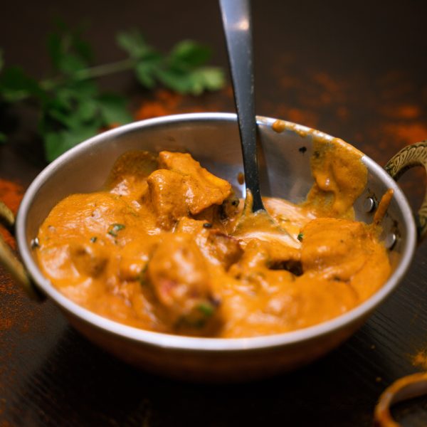 Filet de poulet cuit dans le tandoor avec de l’ail, des tomates et de la coriandre.