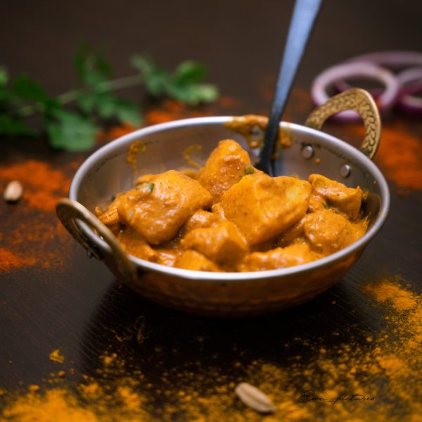 Filet de poulet mijoté dans une sauce assez relevée avec des pommes de terre.